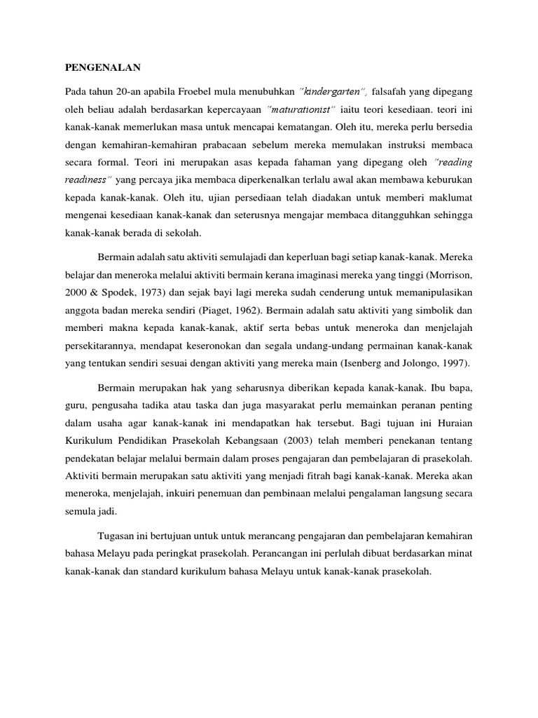 100 3 100 found this document useful 3. Mereka sudah boleh memahami simbol dan sosialisasi Debord dan Hertzler dalam Swadener 1994. Pengajaran Dan Pembelajaran Kemahiran Bahasa Kanak-Kanak Prasekolah.