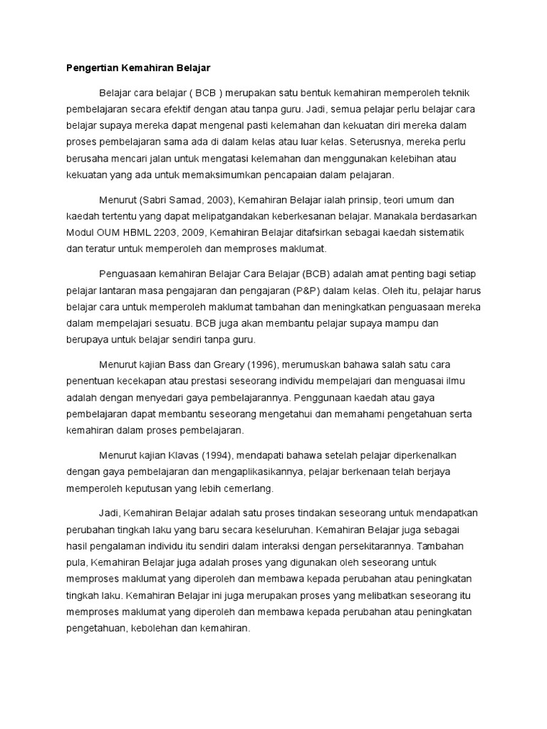 Pengertian Kemahiran Belajar Pdf