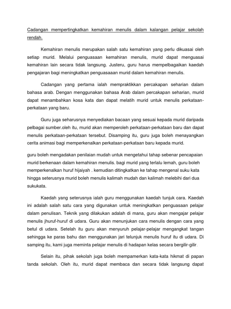 Cadangan Mempertingkatkan Kemahiran Menulis Dalam Kalangan Pelajar Sekolah Rendah Pdf