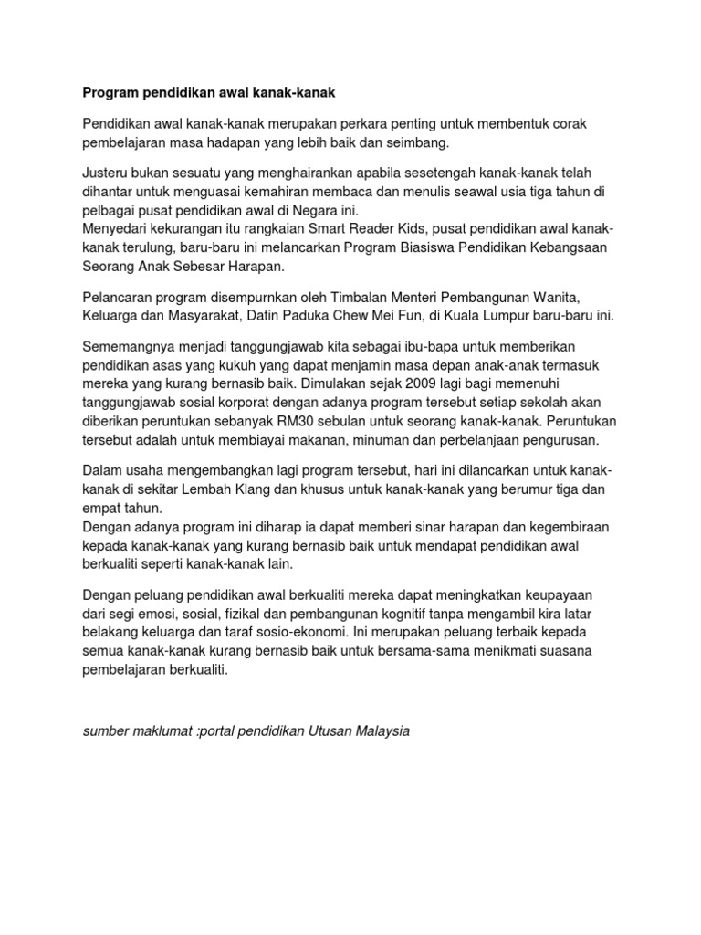 Program Pendidikan Awal Kanak Pdf