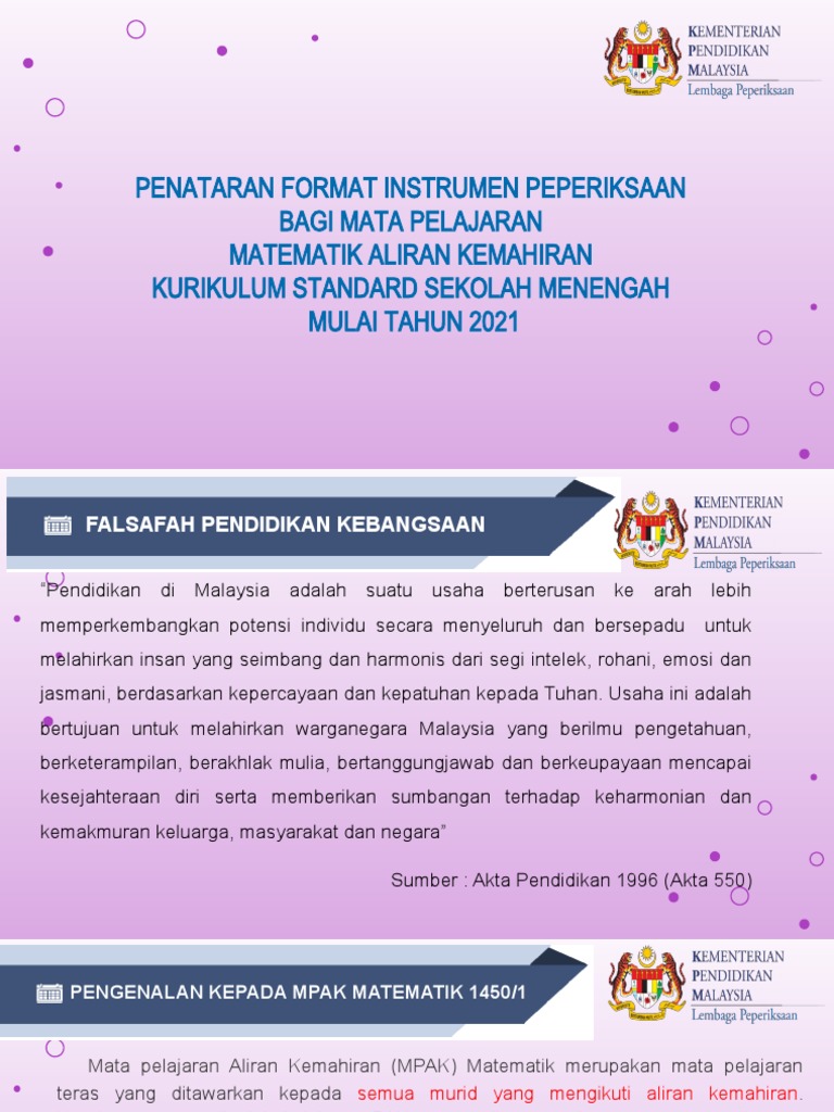 Penataran Format Instrumen Peperiksaan Bagi Mata Pelajaran Matematik Aliran Kemahiran Kurikulum Standard Sekolah Menengah Mulai Tahun 2021 Pdf