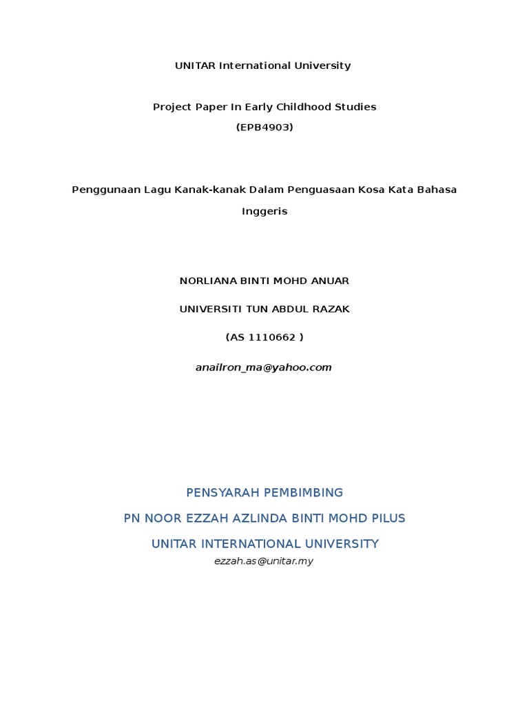 Penggunaan Lagu Dalam Peningkatan Kosa Kata Bahasa Inggeris Kanak Kanak Prasekolah Pdf