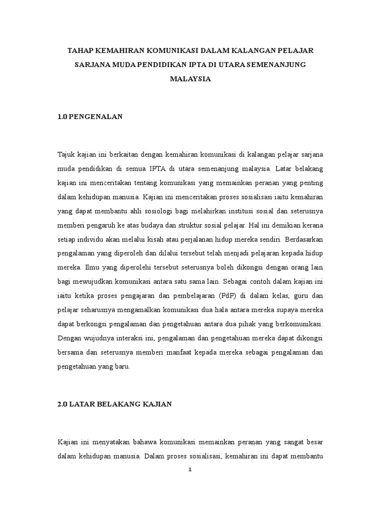 Tahap Kemahiran Komunikasi Dalam Kalangan Pelajar Pdf
