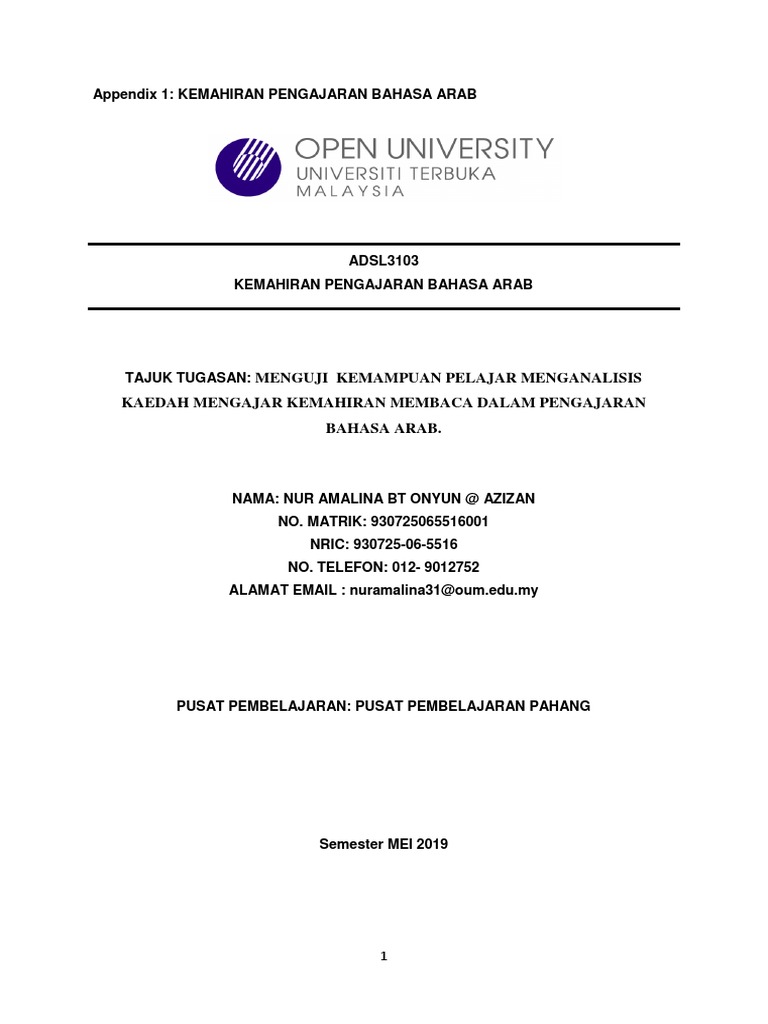 A mendengar dan memahami pertuturan dan siaran yang terdapat dalam kehidupan sehari-hari sama ada di dalam atau di. Namun demikian pengajaran dan pembelajaran bahasa Arab telah mengalami banyak perubahan seiring dengan perkembangan bahasa asing di Eropah pada abad ke-20 di mana pengajaran dan pembelajaran bahasa asing mulai menjadi perhatian penyelidikan sehingga muncul pelbagai metode baru dalam pengajaran dan pembelajaran bahasa Brown 2008. Secara keseluruhannya hasil kajian menunjukkan tahap kemahiran bahasa Arab bagi pelajar tahfiz terhadap pembelajaran bahasa Arab berada pada tahap yang tinggi iaitu dengan nilai min 305 dengan sisihan piawai 0514.