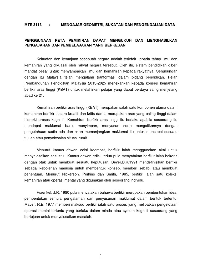 Penggunaan Peta Pemikiran Dapat Mengukuh Dan Menghasilkan Pengajaran Dan Pembelajaran Yang Berkesan Pdf