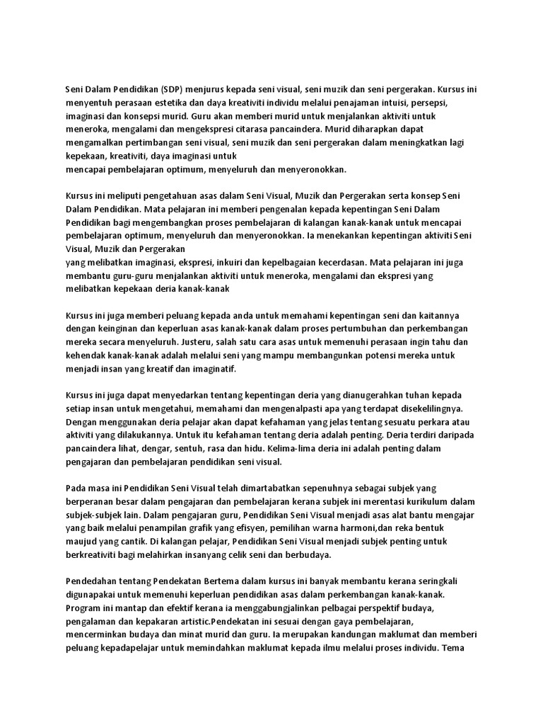 20 PengenalanPendidikan Seni Di Dalam Sistem Pendidikan Formal Negara bermaksud program pendidikan yang bersistem terancang dan boleh diukur prestasinya bagi memenuhi keperluan individu dan aspirasi negara. Ia merangkumi idea-idea yang dicetuskan melalui lukisan ukiran dan pelbagai kemahiran tangan yang lain yang diadunkan daripada. By Unknown 1315 Read.
