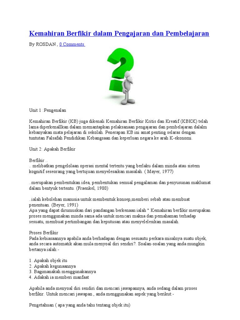 Kemahiran Berfikir Dalam Pengajaran Dan Pembelajaran Pdf